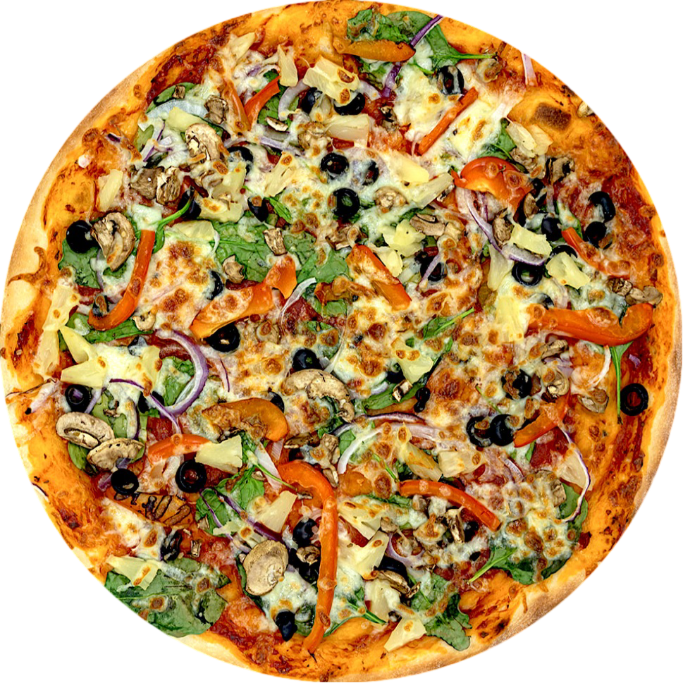 Tomatoes, Capsicum, Olives, Onion, Mushroom, Pineapple, Spinach, Feta & Mozzarella Cheese