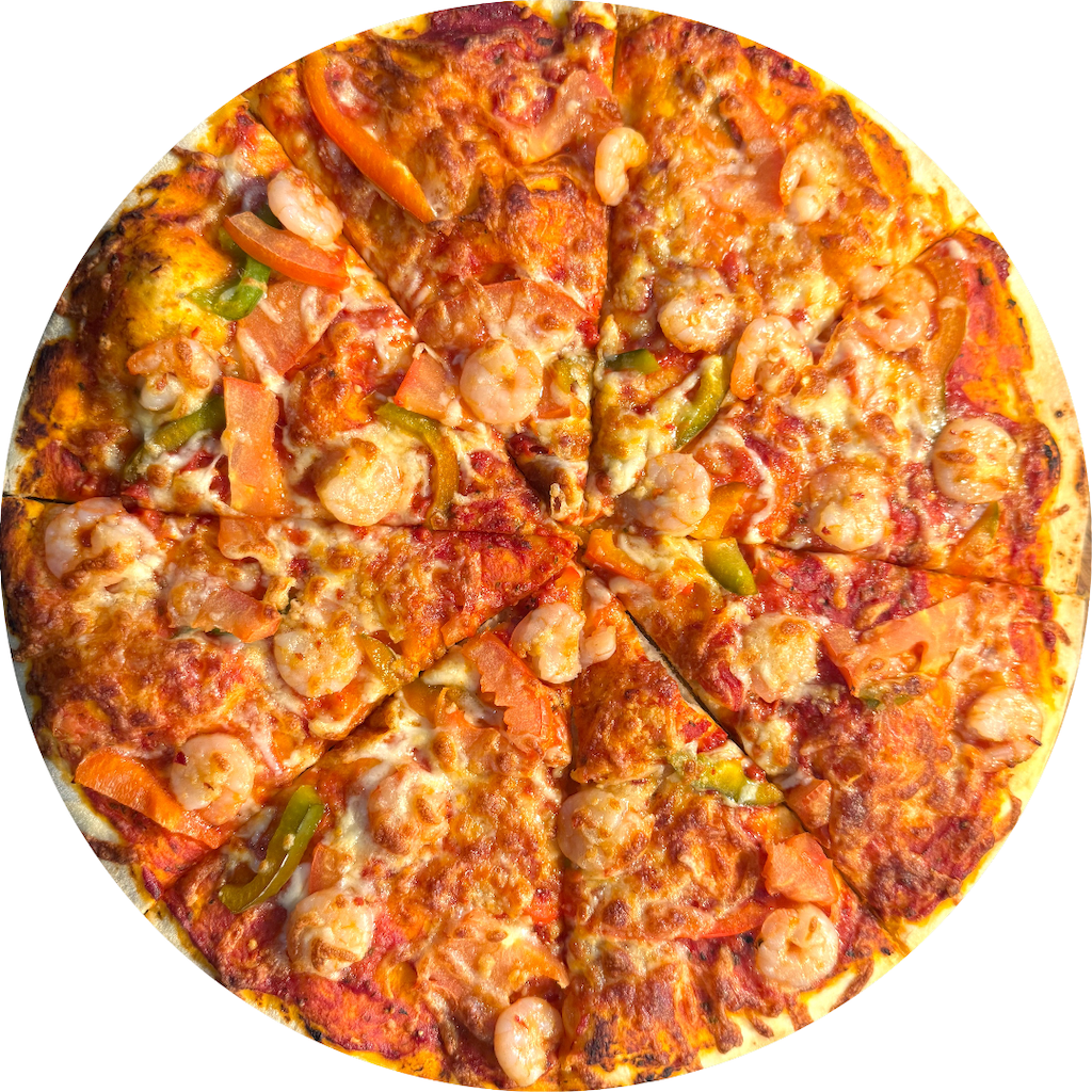 Our pizza dough is made in-house fresh daily! Garlic Prawn pizza consists of Garlic, Prawns, Capsicum, Tomato, Olive Oil, Chilli Flakes & Mozzarella cheese with a tomato base Don't forget: We have a variety of add-ons to suit your taste buds